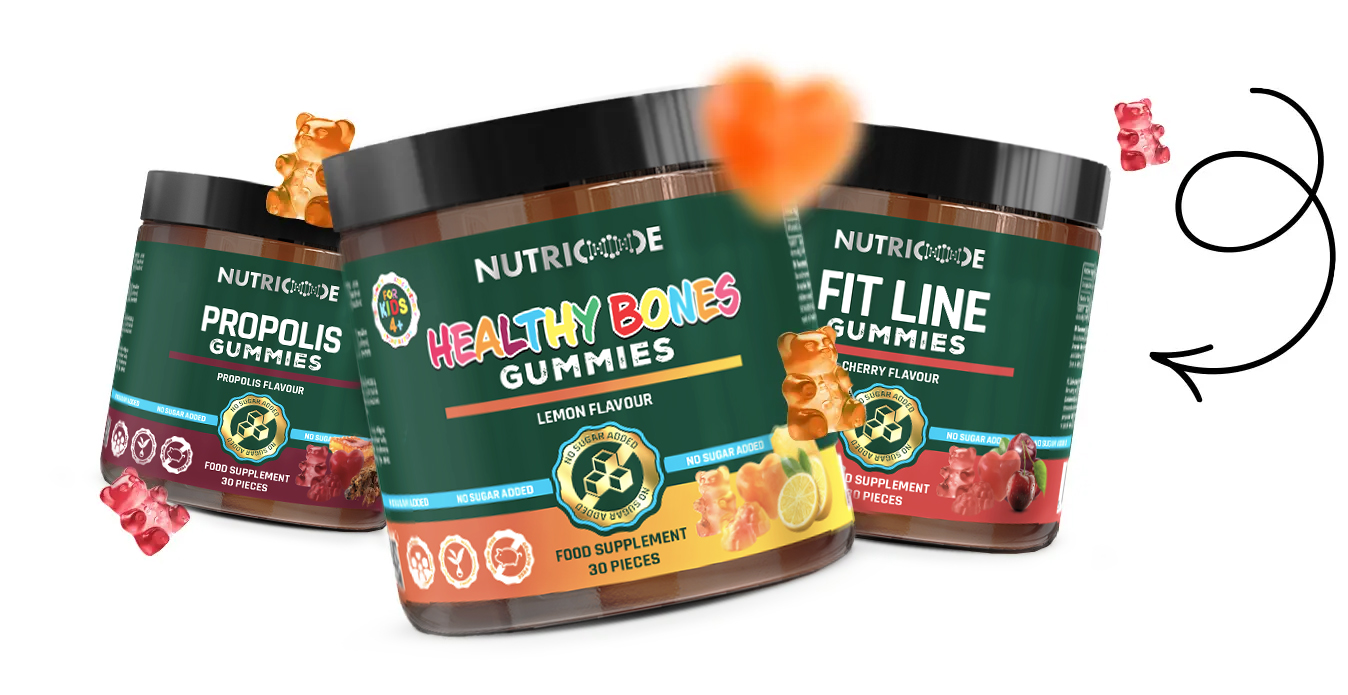 NUTRICODE food supplements in gummy form let you enjoy a fruity taste without worrying about calories or effects on blood glucose levels. Instead of sugar, they contain naturally sweet ingredients – inulin and oligofructose obtained from chicory root. These plant-based prebiotics and dietary fibres stimulate the growth of bifidobacteria and Lactobacillus, supporting the development of beneficial gut microflora, improving intestinal peristalsis and digestive processes. They also increase the feeling of fullness and enhance the absorption of nutrients, including calcium and magnesium. As a result, they may have a positive effect on immunity, energy levels and overall wellbeing.